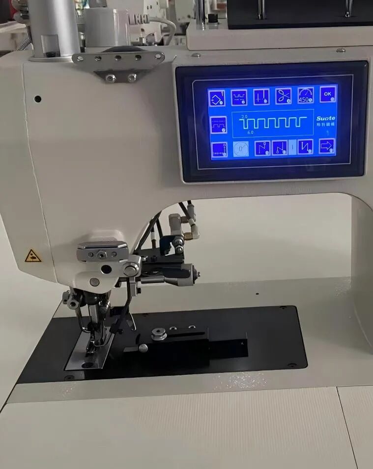 1、配備液晶顯示屏,圖像清晰。操作人員能直觀看到各項參數(shù),如縫紉長度、針數(shù)、針距等,快速調(diào)整,提高工作效率。